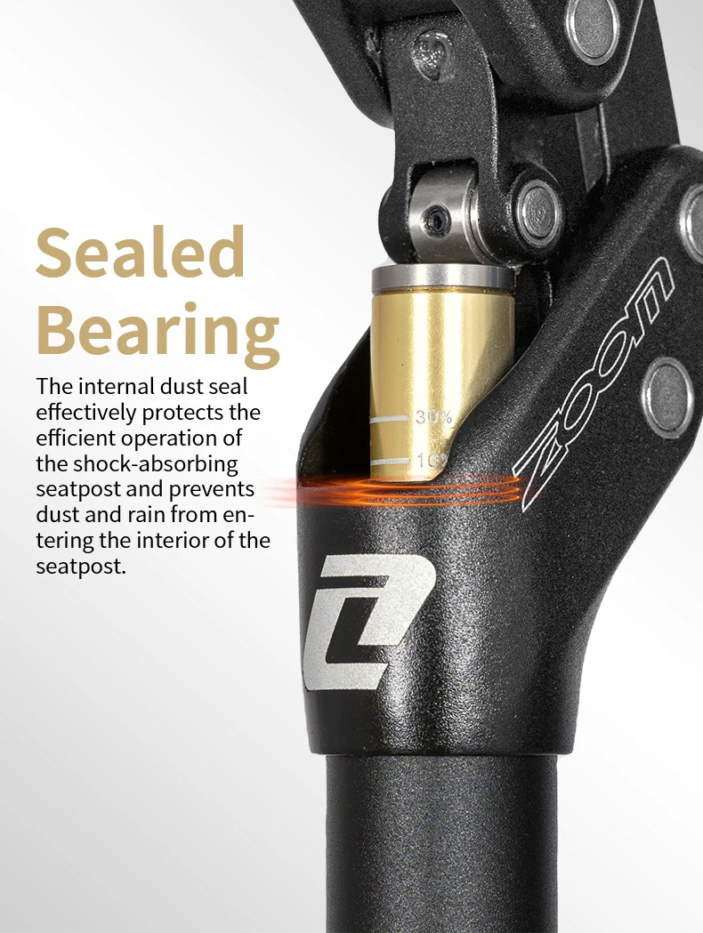 The internal dust seal effectively protects the efficient operation of the shock-absorbing seatpost and prevents dust and rain from entering the interior of the seatpost.