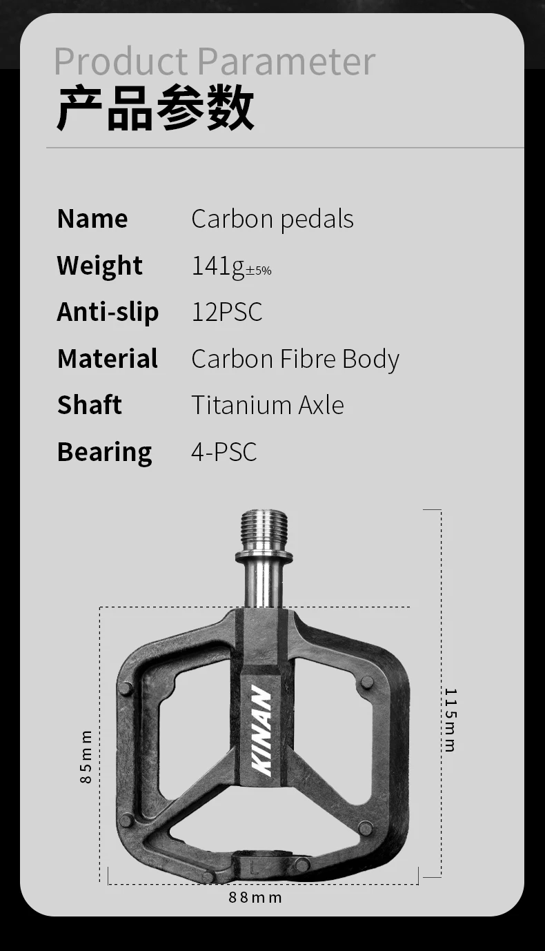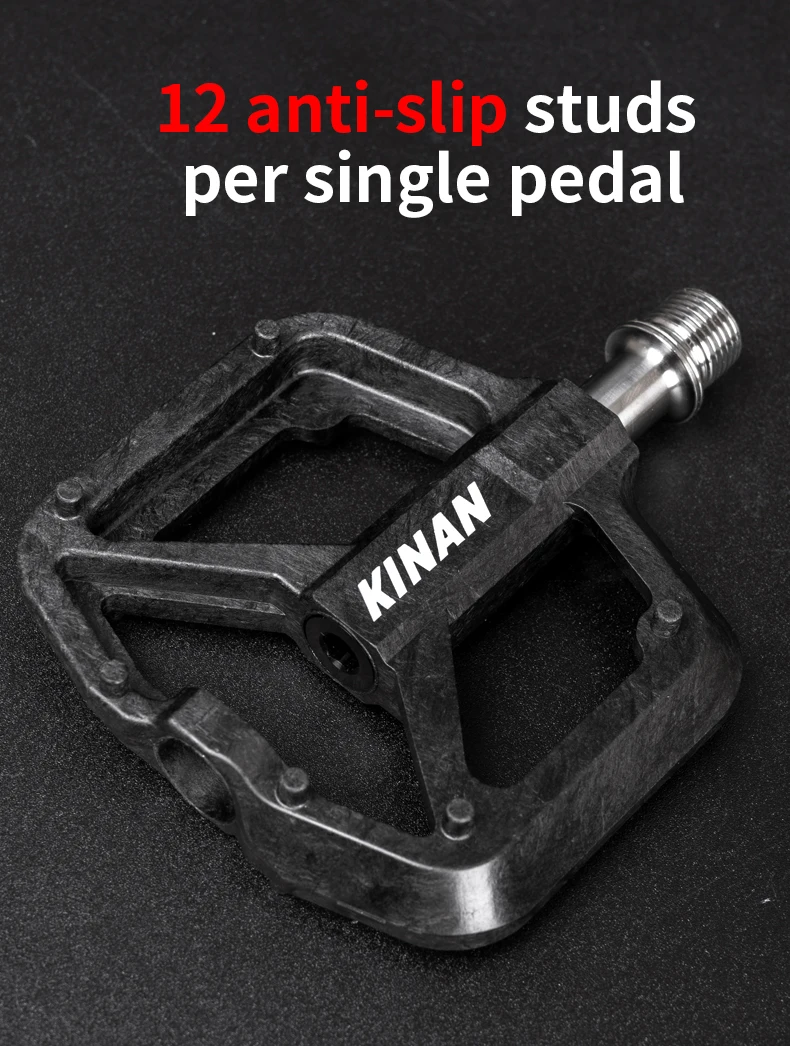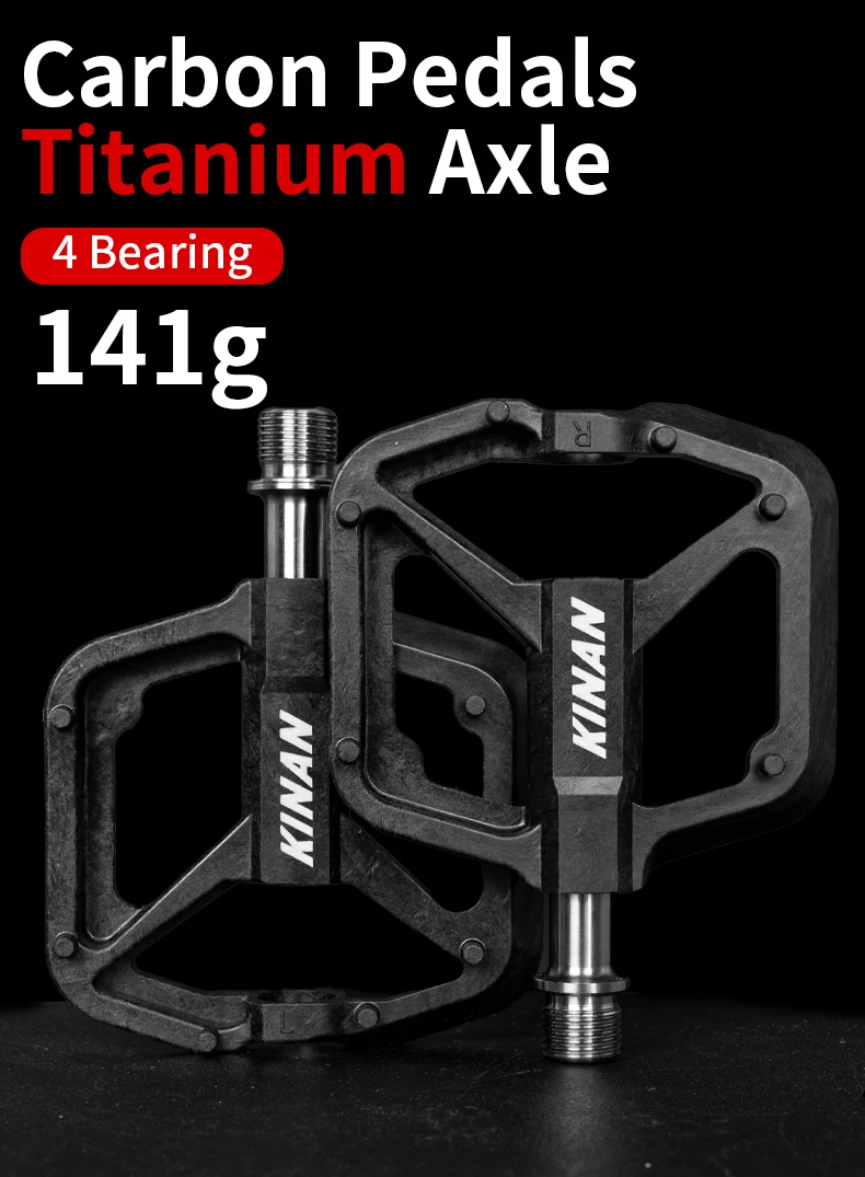 KINAN Carbon Titanium Axle Pedals, Ultra-light 141g Carbon Body With Titanium Alloy Axle, 4-Bearings Pedal, Anti-slip MTB Bike Pedals