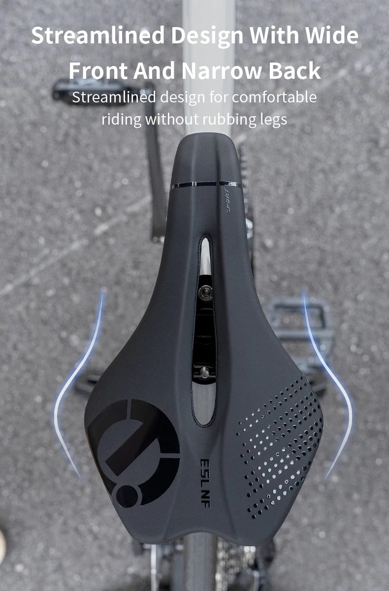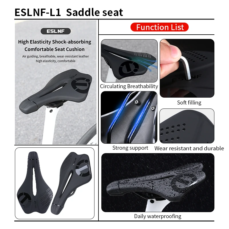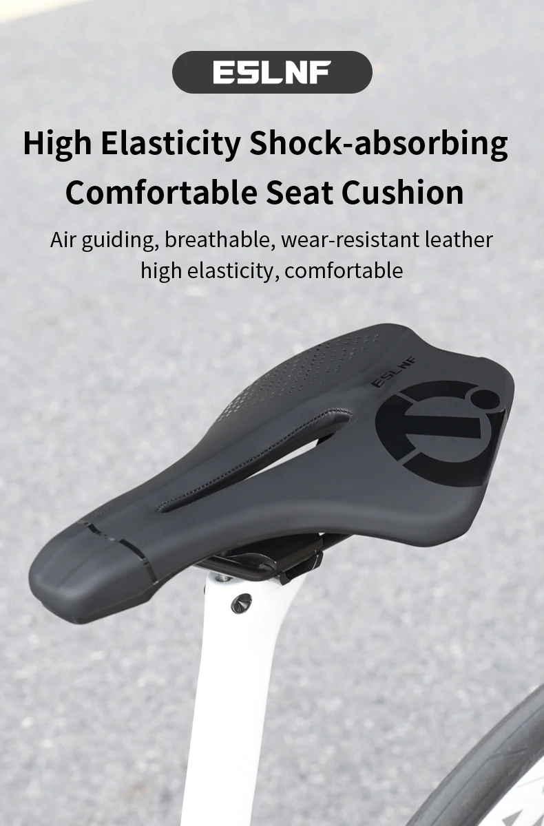 ESLNF PU Comfort Saddle – Shock Absorbing & Breathable for Long RidesSaddle pain or numbness ruining your longer rides? This ESLNF PU saddle combines comfortable padding, hollow design for pressure relief, and breathable construction to keep you cool and supported on MTB trails or road endurance.Non-slip surface holds your position in wet or sweaty conditions, while shock-absorbing foam reduces impacts from bumps and vibrations. Lightweight yet durable – perfect for daily commuting, training, or recreational cycling.Affordable upgrade for all-day comfort in 2026!Key Benefits: