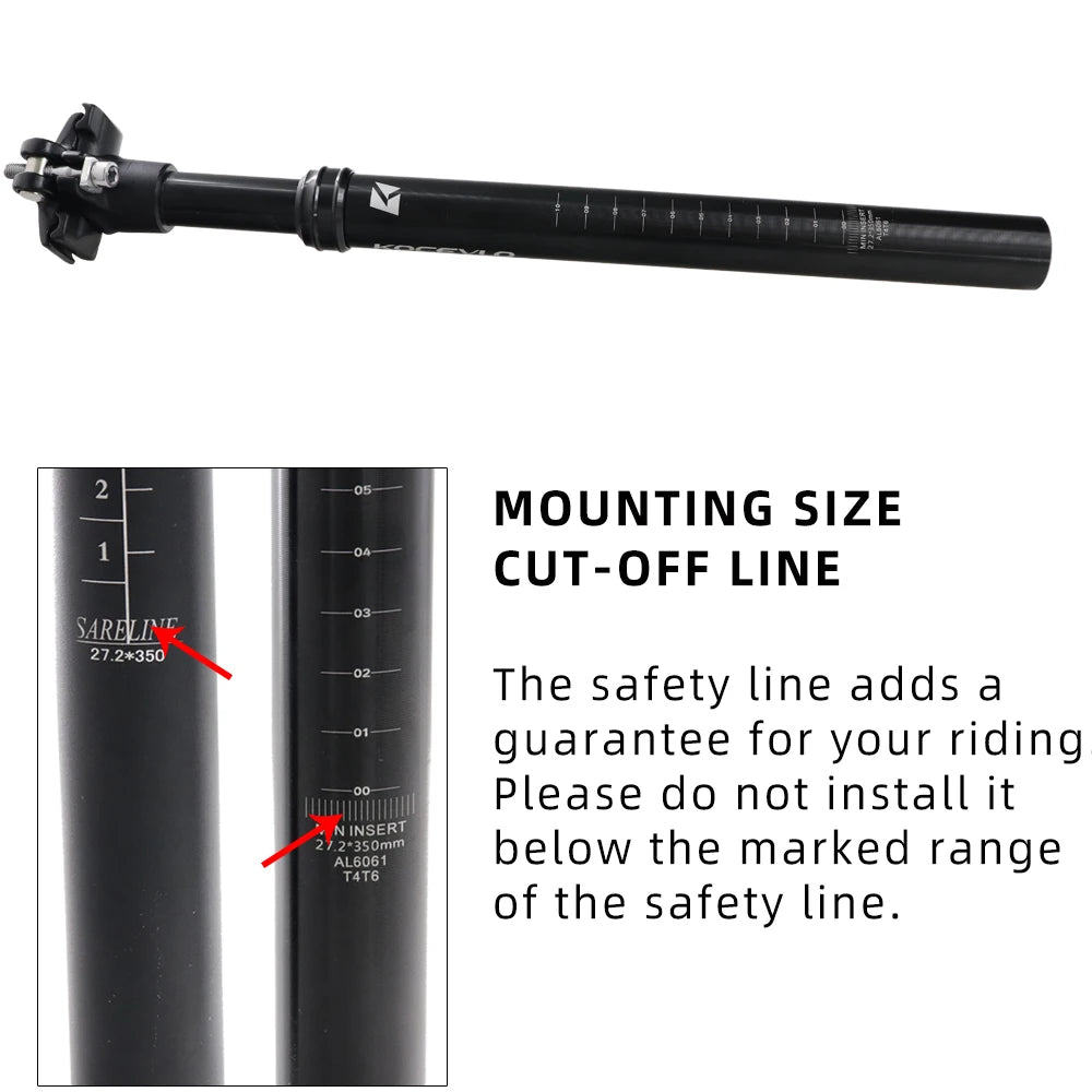 KOCEVLO Suspension Dropper Seatpost 46mm Travel - Aluminum Shock Absorbing MTB Seat Tube 27.2-31.6mm 350mm