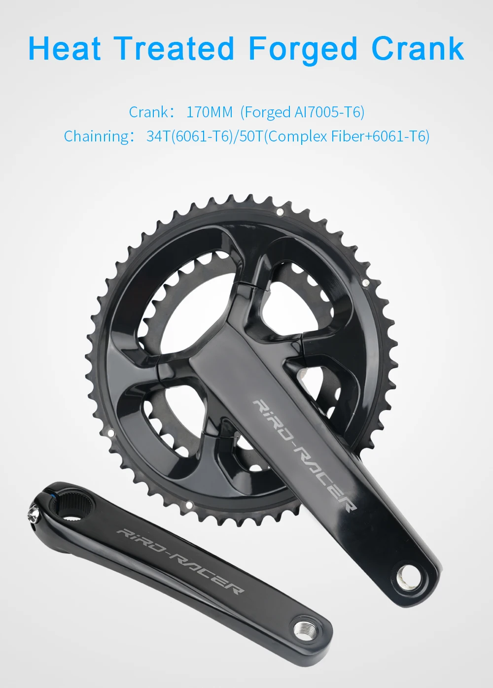 Unlock Easier Climbs and Smoother Shifting with RIRO RACER R8 Ultralight CranksetTired of heavy stock cranks making every hill feel brutal, wasting your power on long rides, or rough shifting in compact gears? The RIRO RACER R8 is the affordable carbon upgrade you've been waiting for – ultra-stiff, super light, and perfect for climbing-focused road or folding bikes.With hollow carbon arms (~388g crank only) and precision CNC 50-34T chainrings, this 170mm compact crankset delivers explosive efficiency, crisp 10/11/12-speed shifts, and serious weight savings without the premium price tag. Direct mount design for easy install and perfect chainline.Ideal for riders upgrading from heavy alloy cranks who want better hill performance and faster acceleration in 2026!